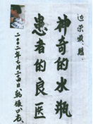 凡尊重中國(guó)古代養(yǎng)生智慧的患者,堅(jiān)持“已饑方食”和定時(shí)主動(dòng)補(bǔ)水者,均可祛病康復(fù)。如牡丹江醫(yī)學(xué)院87歲的張鵬圖飲用半年后高血壓未痊愈,陸江與他通話交流,了解他原先每日主食4兩,建議他用“已饑方食”減少主食肉食量,他理解后,將每日主食減為3兩,少吃兩塊肉,飲用一年治愈26年的冠心病和高血壓。他2003年5月31日來信說:“飲用卓康小分子團(tuán)水是根治高血壓、冠心病、糖尿病的一把金鑰匙,是填補(bǔ)醫(yī)學(xué)空白,為人類造福,應(yīng)推廣該產(chǎn)品?!?/strong>