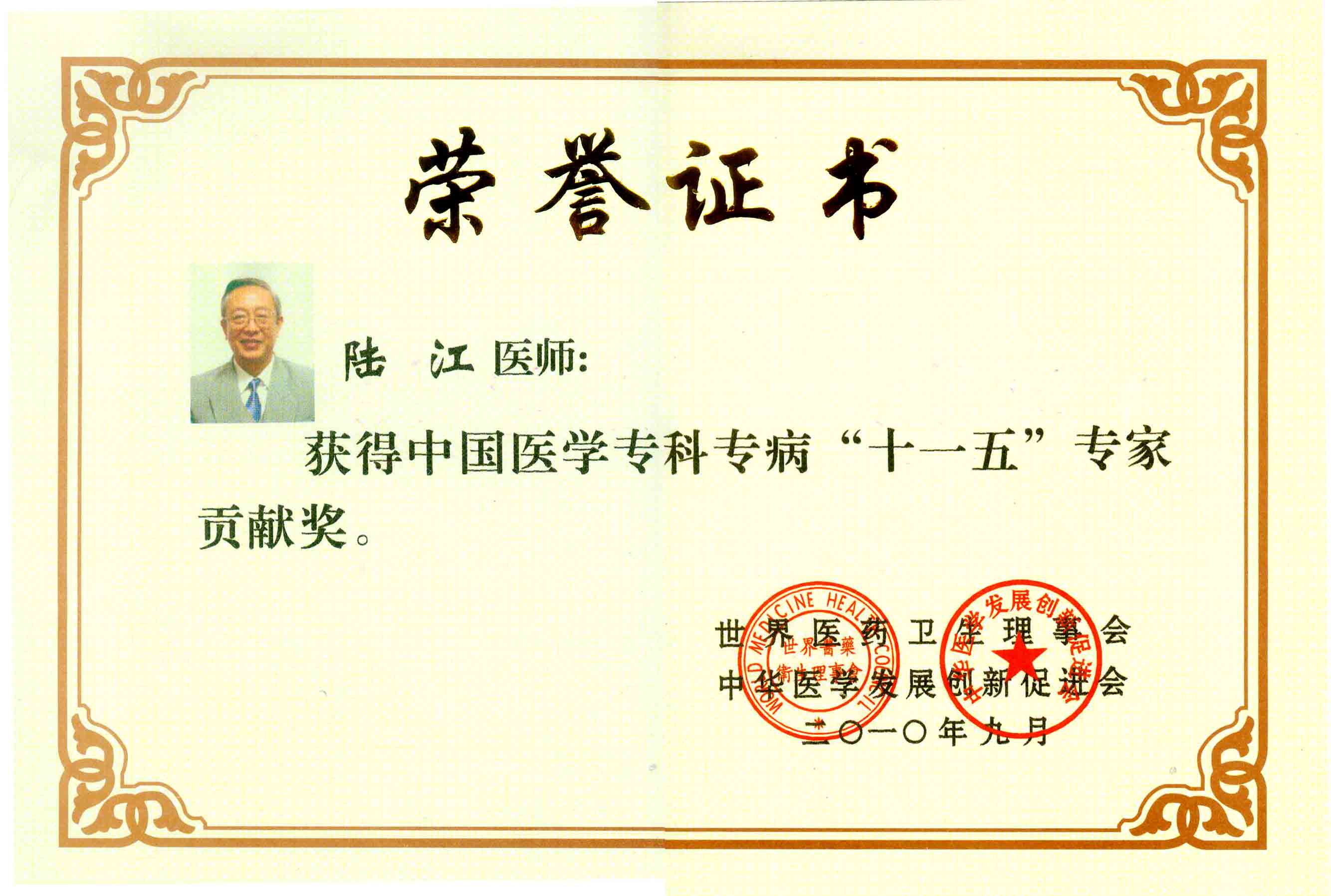 陸江獲得中國(guó)醫(yī)學(xué)??茖2?yōu)秀專家恃別貢獻(xiàn)獎(jiǎng)