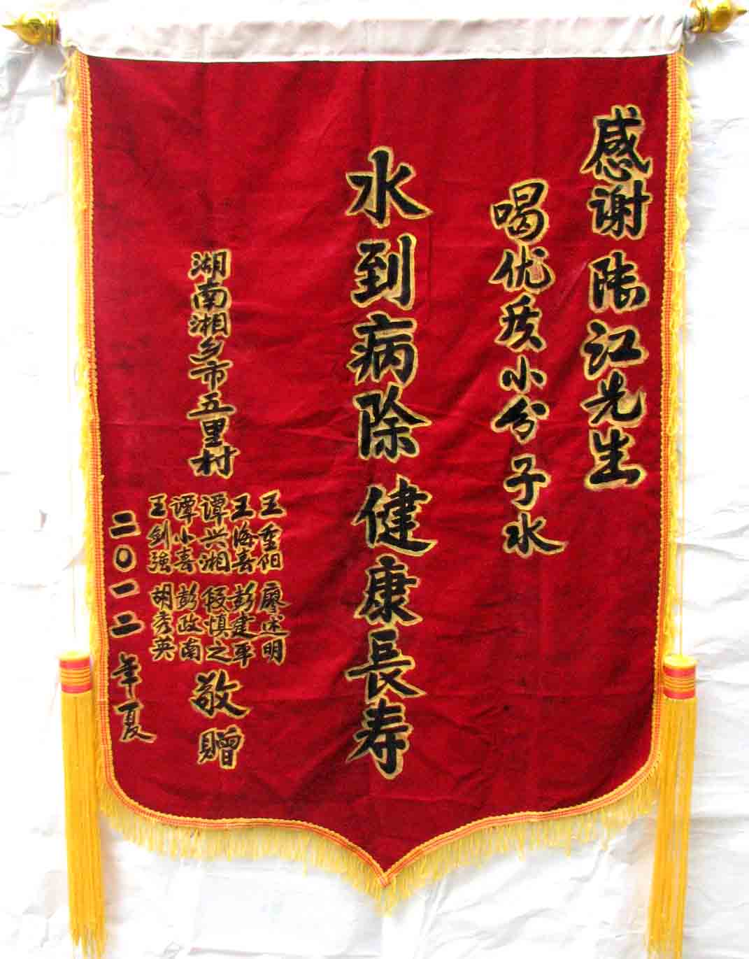 2015年潘志山主動(dòng)寫一篇感想《我以親身實(shí)踐打破了冠心病、高血壓、糖尿病需終生服藥的神話》說:“堅(jiān)持按發(fā)明人陸?江先生倡導(dǎo)的用‘已饑方食’的方法合理膳食,我的健康狀況越來越好:糖尿病造成的視力下降有了明顯的恢復(fù),末梢神經(jīng)炎導(dǎo)致的指端潰爛現(xiàn)在完全痊愈,痔瘡自從飲用微小分子團(tuán)水半年后就再也沒有復(fù)發(fā)過,氣滯血瘀造成的嘴唇暗紫也漸漸變得紅潤(rùn),舌下靜脈黑紫消失,足背的動(dòng)脈由以前的隱約感到跳動(dòng)現(xiàn)在變得清晰有力。”[13]潘先生披露的訣竅,一是飲用微小分子團(tuán)水給脫水細(xì)胞補(bǔ)水,二是“已饑方食”養(yǎng)生智慧,患者都能做到。